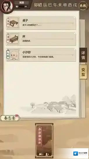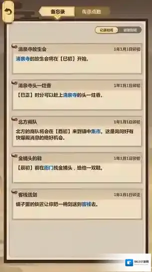 点击左下角的“备忘录”,就能看到自己的任务指引。我选择了跟小和尚对话,所以获得了已时去清泉寺上香的任务。