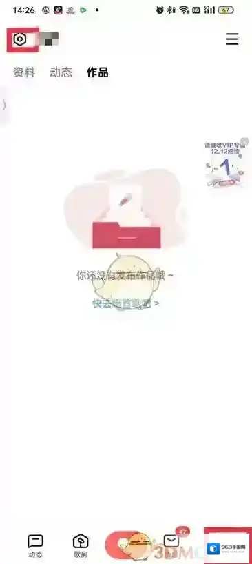 1、打开全民K歌软件进入到全民K歌页面之后点击右下角的我,来到我的页面之后点击左上角的设置图标;