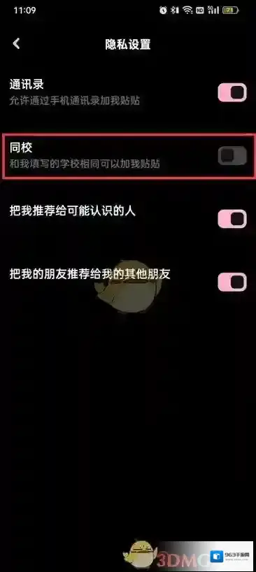 《贴贴》关闭同校方法 2025-07-30 19:36:35 编辑:怅然若失 分类:应用教程 • 阅读:751 1、打开贴贴软件,点击右上角的设置图标; 2、然后来到设置的页面之后点击通用设置; 3、进入到通用设置的页面之后点击隐私设置; 4、最后来到隐私设置的页面之后点击关闭同校即可。 本文内容来源于互联网,如有侵权请联系删除。 发表回复 请登录后评论... 登录后才能评论 评论列表 (0条)