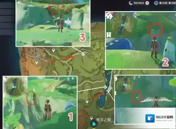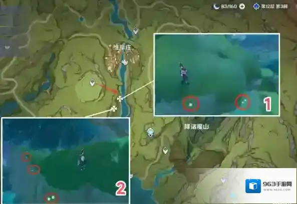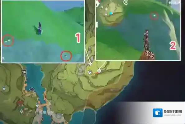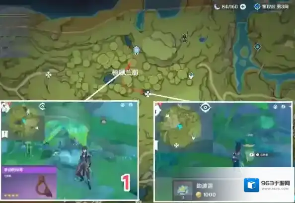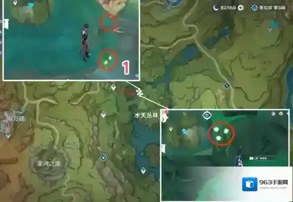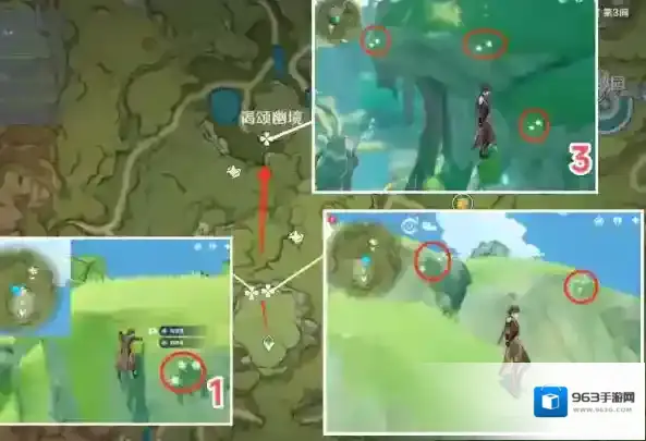 ★注:p1处是一次性的,p1处要用到火元素角色,将草堆烧掉后,拾取地上的一个劫波莲;p2处共6个劫波莲,p2处有2个没有圈在中,但圈了,大家注意看一下