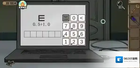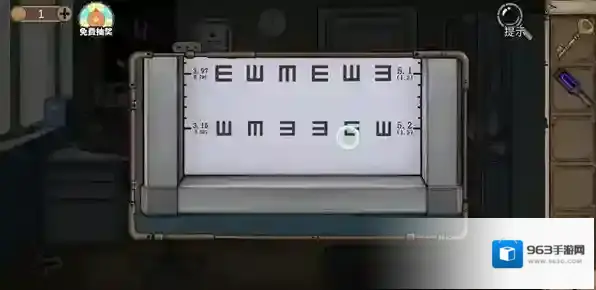 使用布将后面视力表脏的地方擦干净,显示出提示(开口方向)然后使用电脑2468都有方向的,先将电脑上的numlock点亮,然后根据视力表最后一行得出密码824468
