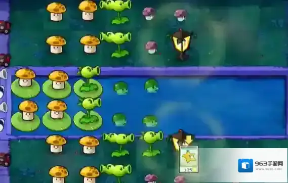 2、进入关卡后首先需尽可能多的摆放阳光菇、水兵菇和小喷菇。