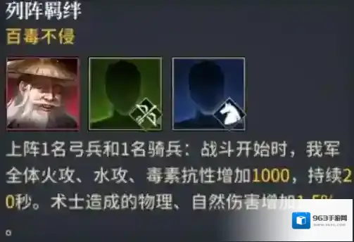 关羽的通过不断地普攻进行被动增伤的叠加,所以就需要较好的输出环境,来保证自身的输出,而身为盾兵的张飞和魏延则可以很好的抗住敌军的伤害,并且还自带「反击」与「增伤」效果,其次带有「眩晕」技能的黄忠,则可以进行远程控制与补伤害,将敌军血线降低,从而触发关羽的「真伤斩杀」效果,最后刘备与华佗的「全体护盾」+「全体恢复」+「全体抗性」,使得全军都能有较长的生存时间,保证了关羽能有较好的输出环境,最终构建出神将天威的桃园三英阵容。