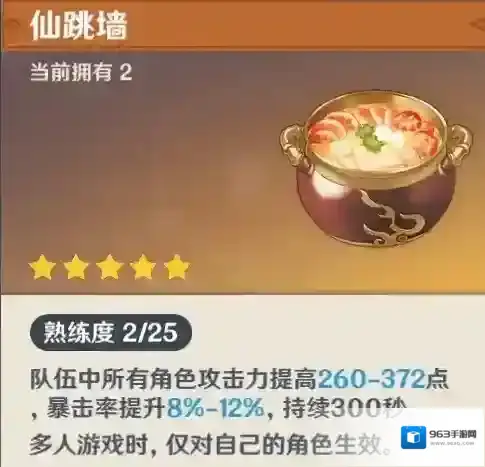 仙跳墙可以也是一个很不错的全队攻击提升食物。