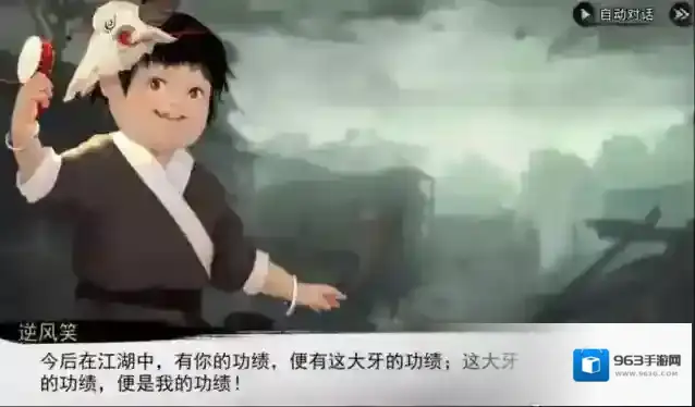 原来自逆风笑来到江湖世界后,便一直被人追打,没想到平时一直忽视的大牙,竟然替他行侠仗义,随之便将大牙赠与大侠们。