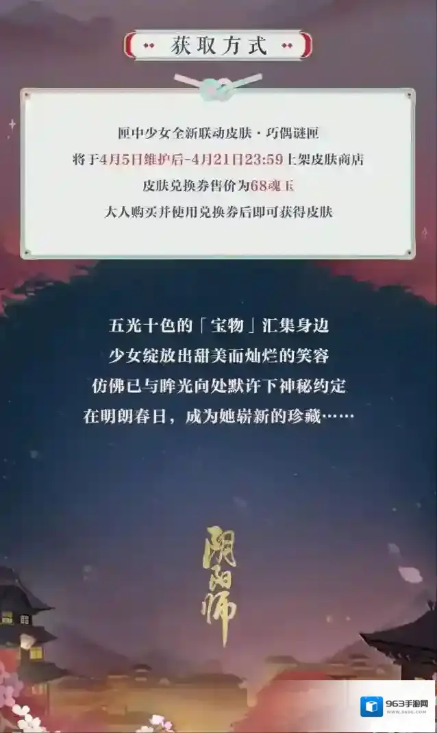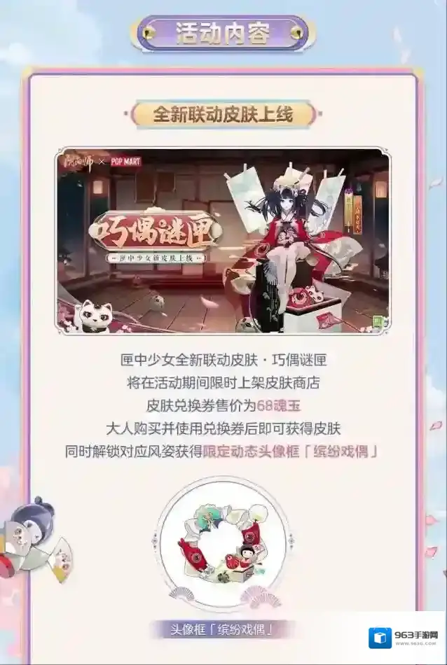 阴阳师×泡泡玛特 联动活动开启,匣中少女全新皮肤上线!