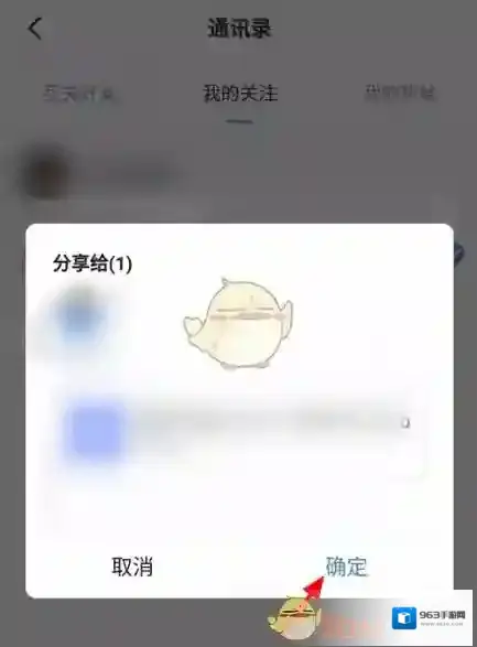 5、在分享给页面,选择下方的确定,这样就分享给好友成功了。