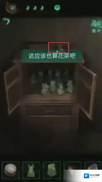 46、来到院子的房间里面,点击左侧柜子,将花放进茶壶。