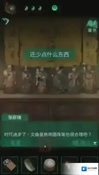 52、点击上面的桌面,可以看到几个神仙雕像,将圆珠笔放在文曲星上。