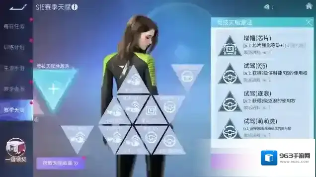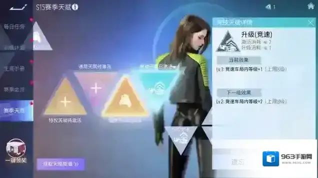 在『竞技天赋』中,车手们则可以获得多方面的竞技实力加成:提升对应定位车辆的局内等级;提升芯片强化等级;解锁更多车辆使用权(车辆可在排位赛中使用)。