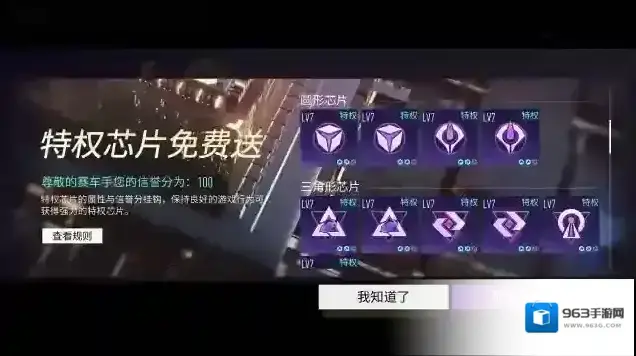 特权芯片轻松享,秀翻全场好嗨哟!各位车手可别忘了上线领取,保持良好的游戏行为发挥出更强力的芯片效果,在赛场上取得更好的成绩吧!