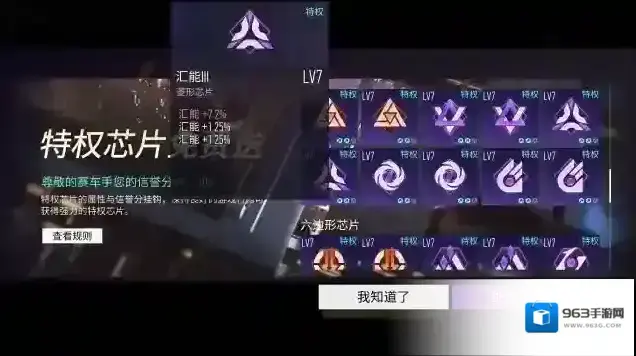 特权芯片的等级将随车手们的信誉评分提升,特权扩展芯片最高为7级,特权核心及V型芯片最高为5级。所有特权芯片均不能用于升级和突破。