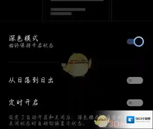 3、然后开启深色模式后面的开关。