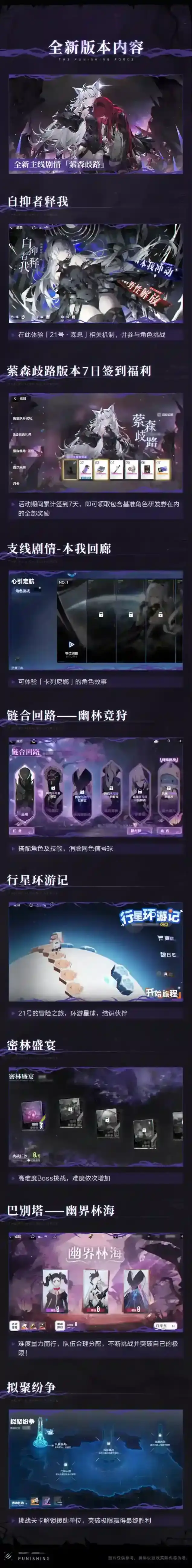 ♢萦森歧路版本一览♢一起来看看新版本有哪些内容吧~♦全新泛用机体「21号·森息」登场,幽林逐影,离群归程–♦全新特效涂装「罪誓茜羽」、全新涂装「迷途梦魇」上架♦S级辅助机「冥牙」上线,全新六星意识「弗兰」登场♦参与「行星环游记」活动,即可获得全新涂装「苍山尘叶」