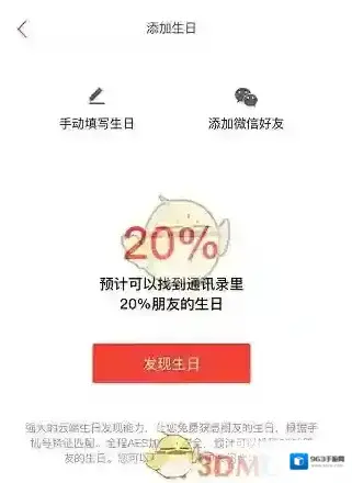 4、在“+”界面能够手动填写生日并添加,当然你也可以通过添加微信好友以及开通通讯录权限来发现生日!