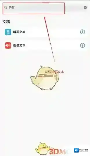 3、搜索并添加“听写文本”,语言选择“中文”。