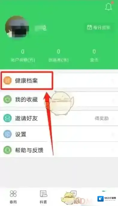 2、在“个人中心”窗口中,找到“健康档案”选项并点击它。