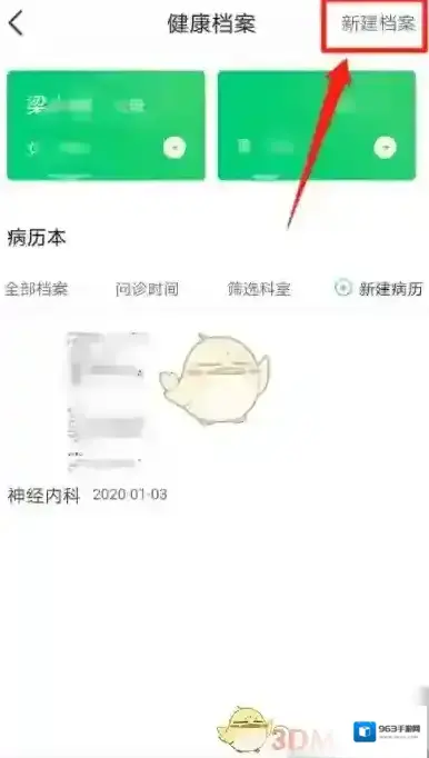 3、在“健康档案”窗口中,点击右上方“新建档案”按钮选项。