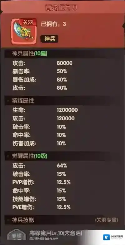 暴击率:配合关羽的击杀奖励,更容易让关羽打出暴击。