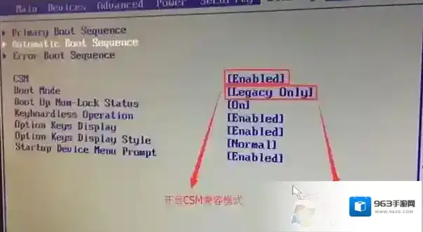 3、切换到Boot,把Boot Mode从UEFI改成Legacy only引导模式,再把csm默认disabled改成enabled,开启兼容模式,选择F10保存设置,在弹出的选项中选择YES;