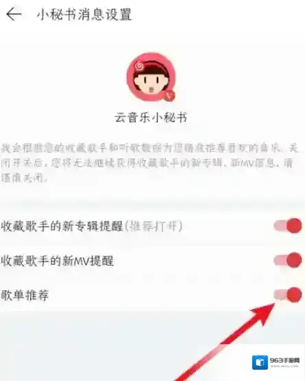 网易云歌单推荐功能怎么关闭?网易云歌单推荐功能关闭方法 2025-09-01 07:30:55 编辑:騎豬去撞樹 分类:软件教程 • 阅读:135 1、手机打开网易云音乐,点击左上角“三”; 2、点击右上角的“消息中心”; 3、在信息中心中找到点击“云音乐小秘书”; 4、进入后对话框后点击右上角的“设置”; 5、在下方设置中关闭“歌单推荐”功能就可以了。 发表回复 请登录后评论... 登录后才能评论 评论列表 (0条)