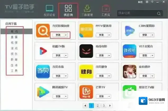 7、可以直接通过TV盒子助手的“找应用”,接着找到自己喜欢的软件,直接点击安装,接着耐心等待即可成功进行软件安装;