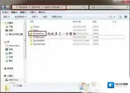 在Win7系统下itunes同步设备后默认备份文件会放在C盘《itunes备份文件在哪》不过这样会有很大弊端,如占用空间、重装系统后会丢失等等问题,当然,不要担心,小编已经给大家整理好的解决方法itunes备份文件路径更改和itunes备份文件转移方法。首先我们要知道的是苹果iTunes原生是不允许修改备份路径的,所以安装后备份只能放在C盘,不过我们可以通过一些小技巧来把备份放在别的磁盘,当然itunes还是能识别备份的。itunes备份文件路径更改:(其实路径不变,不过备份实体不放在C盘)1、首先进入iTunes的备份路径《C:Users用户名AppDataRoamingApple Computer》之后,可以看到有个叫做MobileSync的文件夹,就是iTUnes的备份文件夹了,如果已经备份过,你会发现它真的体积非常大,有些情况下达到几十G。