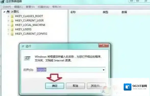 2、在开始→运行中输入:regedit按回车键之后,打开注册表编辑器。