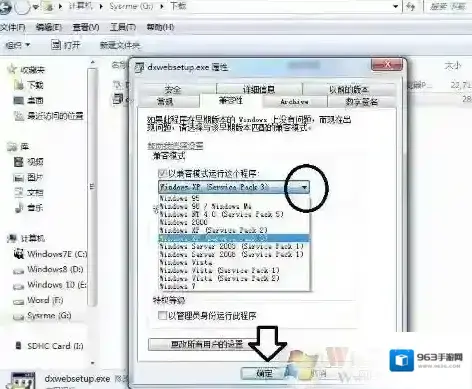 2、或者右键点击程序→属性→兼容性→选择匹配的操作系统运行→确定。