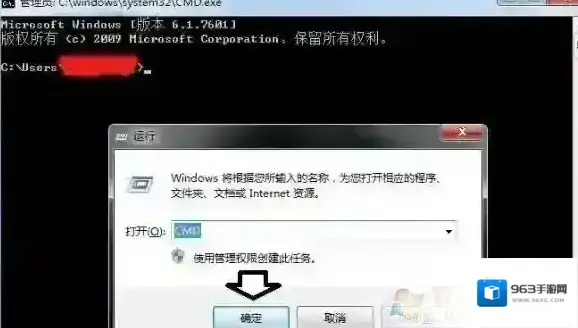 1、还可以尝试注册所有的动态链文件。开始→运行→输入:CMD 点击确定(或按回车键),打开命令提示符窗口。