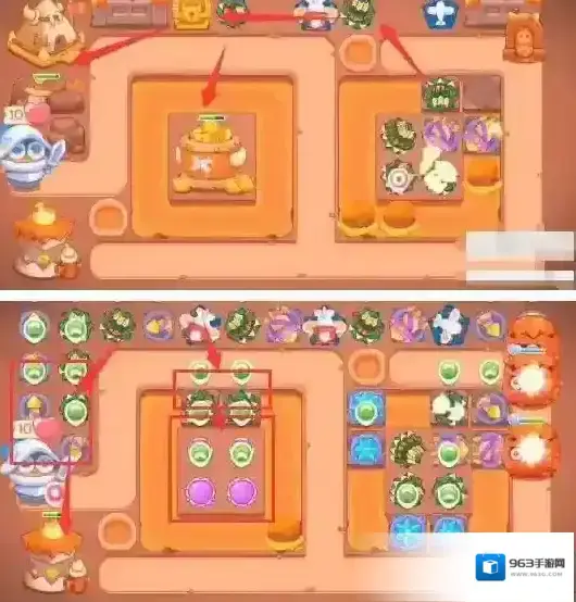 4、清完岩浆中的道具可能会有格子,在格子上放炮塔接着向上面开图。