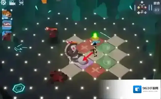 1、移动到左上角的紫色格子,清掉面前一列的敌人