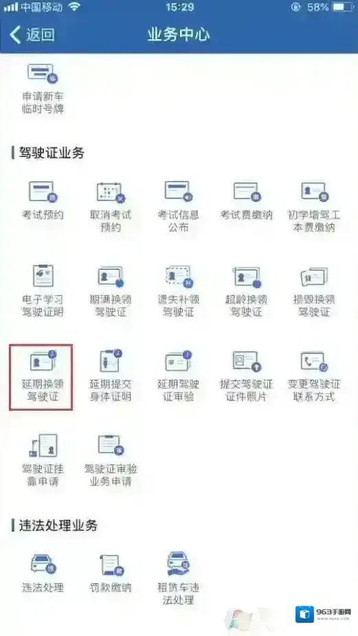 2、点击“更多”,在驾驶证业务中找到“延期换领驾驶证”;