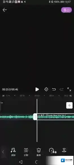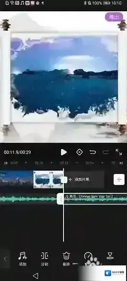 6、如果音频轨道超过主轨道时长,可以使用“分割+删除”去掉多余的音乐段。