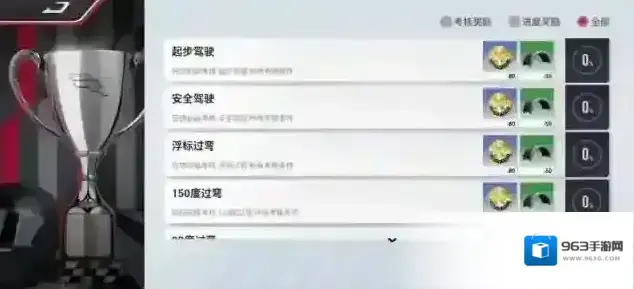 至少要通过初级阶段的四个关卡,即油门教学、方向教学、手刹教学,以及弯道角度教学,可以获取到低级轮胎零件*250、金币*400的奖励。