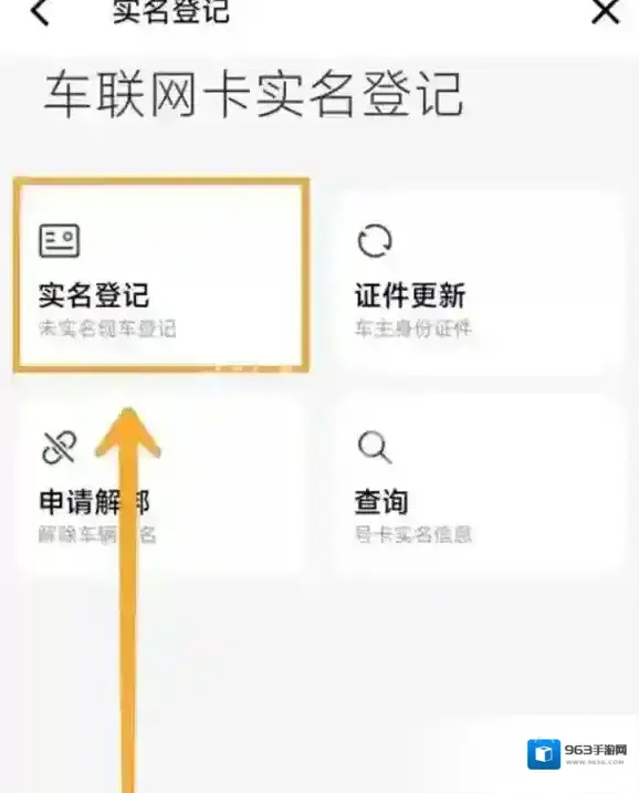 4、在汽车网卡的实名认证页面上,点击实名登记。