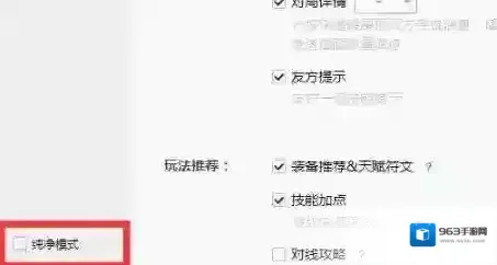 5、最后我们还要把纯净模式这个勾选给取消了,符文推荐就又打开了。