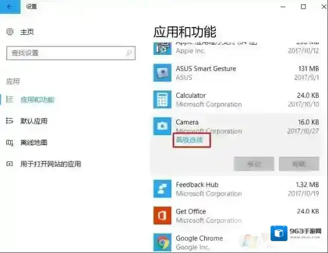 1、单击Windows键+ I并打开应用程序和功能。2、找到camera并点击它。选择高级选项,然后选择重置。