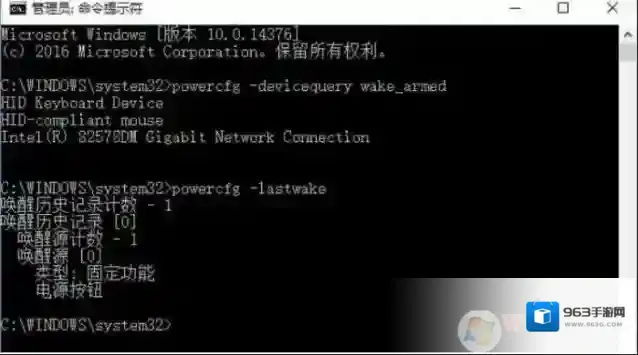 注:如果设备管理器中找不到设备,那么输入这个命令 双引号中填写设备名称,比如powercfg -devicedisablewake “HID-compliant mouse”这个命令只能用于设备管理器里面找不到的设备,如果是能找到的设备,用这个命令是无法关闭的。5、禁止之后,我们再使用powercfg -devicequery wake_armed 命令输出结果是否为无,是的话就代表全部关掉了。6、关掉之后再试试睡眠时会不会被唤醒,如果还有耗电严重的问题出现,那么可以用powercfg -lastwake这个命令看看上次睡眠一共被唤醒了几次,是哪些设备或者进程唤醒了计算机。就可以针对性的处理了。