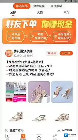 2、在每日必发页面,还会有朋友圈分享赚活动,好友下单你赚现金。