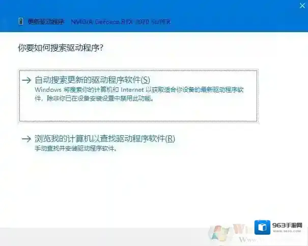 6.自动搜索即可,一般来说只要是主流的显卡,系统应该能够自动下载安装显卡驱动