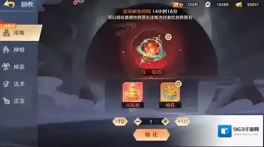 在此次复刻的“限时淬炼”活动中,守护使可以通过消耗“淬炼鼎”道具将任意橙色阵营石淬炼成任意红色阵营石!而在上次活动中剩余的淬炼鼎道具,此次活动也可以继续使用。