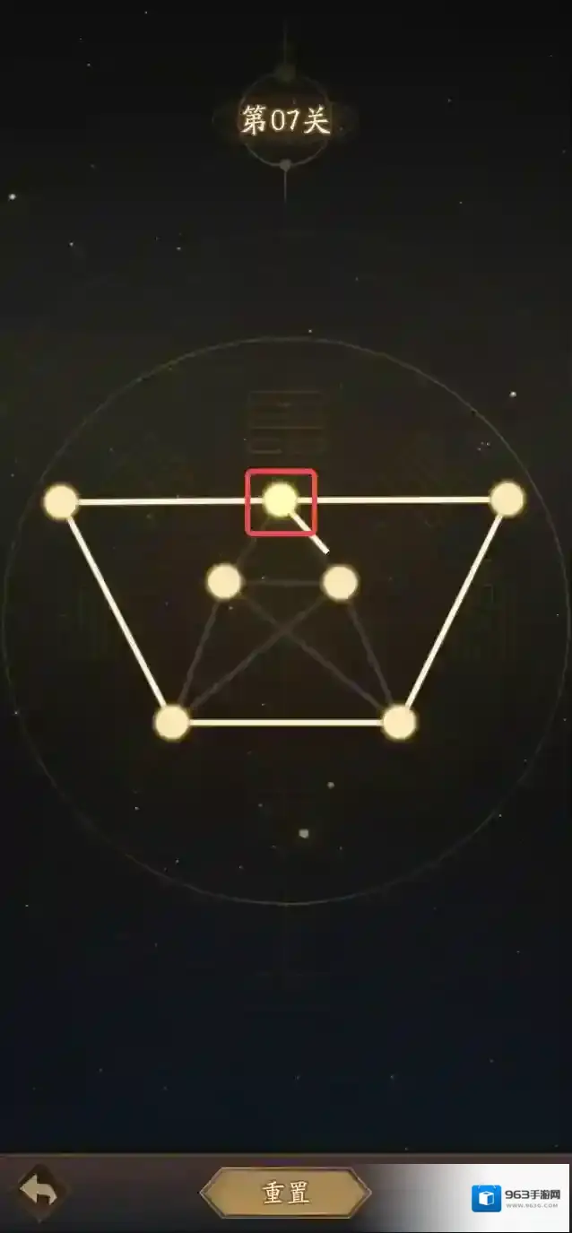 第七关选择图示奇数端点起手,先把外围连通,再逐个连接内部剩余点即可通关。