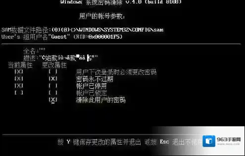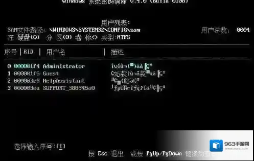 9、如上所示,我们选中 我们要清除的帐户,然后回车,选对清除密码,按Y键就开如清除操作;