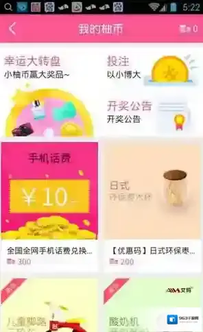 6、在“我的柚币”页面你可以用柚币进行抽奖活动,奖品有精美杯子、儿童脚踏车、家电、美妆、电子产品等好物,在首页每天签到就能获得柚币哦!