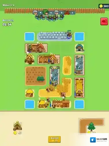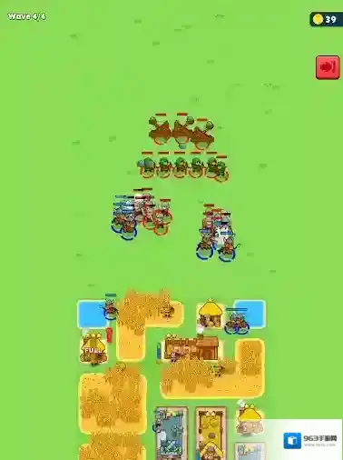 2、将形状独特的田地、房屋和建筑放置在网格上,以管理资源并推动您不断增长的经济,训练你的军队。