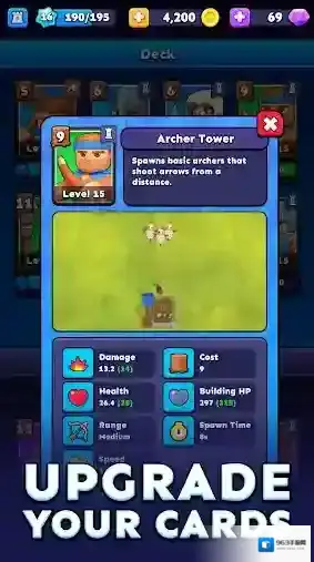 3、通过升级来强化你的单位。赢得战斗时解锁宝箱,其中包含有价值的卡牌,可增强您的部队并提高您的战术优势。