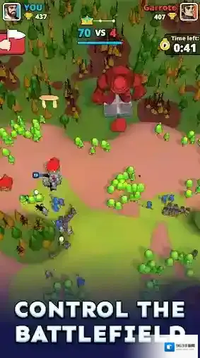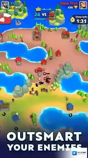 小小冲突(Tiny Clash!),由知名厂商Voodoo所推出的一款休闲塔防类手游。玩家将会踏入一个充满了战斗的惊险世界当中,与来自世界各地的玩家们展开激烈无比的1v1对战,在自己的领地上建造和部署各种独特的建筑,派遣各种强大的单位去进攻对手的领地,消灭所有敌人并占领对手的区域,取得最终的胜利!不断的去收集更多的资源,解锁更多的建筑和士兵,战胜更多强大的对手!