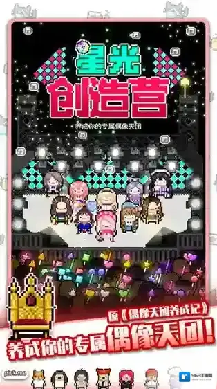 星光创造营,一款像素风格的经营养成类手游。玩家们将会开设一家娱乐公司,招募各种有潜质的偶像练习生,按照风格、人设等方式来培养,然后选择你心目中最棒的练习生们组合出偶像团体,然后荣耀出道,参加各种活动、开设演唱会、制作专辑等等,为你带来源源不断的收入,可持续的去发展公司,让你的娱乐公司能够远近闻名!