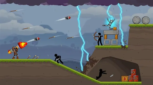 《荒野冒险世界游戏》是一款能当数学教具的娱乐产品。小编建议数学老师都来下载,让学生算抛物线比做题有趣多了。当然,看到学生用公式炸飞敌军时请保持微笑。感到兴趣的用户赶快下载体验一下吧!荒野冒险世界是一款有趣的射击游戏。你的部族被敌人攻破了,他们烧杀抢掠,无恶不作,还掳走了公主,身为主角的你怎么能忍!于是你扛上炮筒就出发了——必须让敌人付出代价!你将操作这名火柴人一路轰轰轰,利用抛物线和不同的弹药属性对敌人发起进攻。